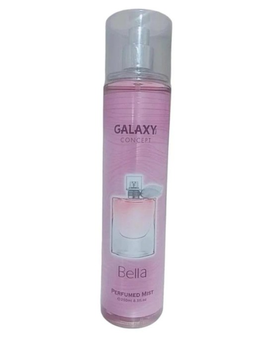 Body Splash Galaxy Concept Bella Perfumed Mist 250ml Bruma Corporal 250ml Família Olfativa: Floral, Frutal, Gustativo Notas de Topo: Cassis ou groselha preta e Pêra Notas de Coração: Íris, Jasmin e Flor de Laranjeira Notas de Fundo: Patchouli, Fava Tonka, Baunilha e Pralinê Inspiração: La Vie est belle